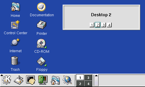 Also, the Ctrl-F1...F8 keys will send you to the corresponding desktop immediately, and Ctrl-Tab will cycle through the desktops.